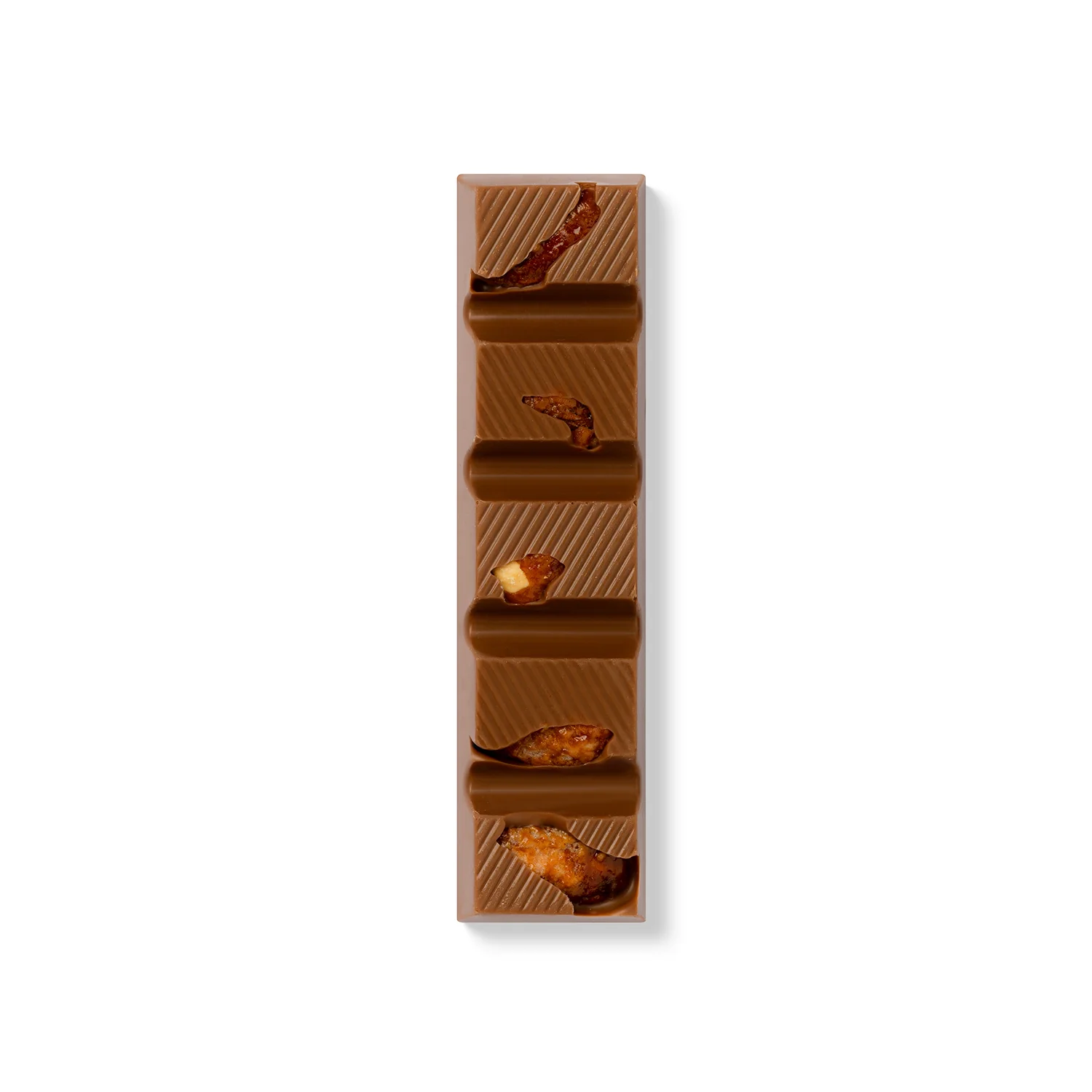 Uma doce combinação por semelhança. De cor dourada, exibe notas de Frutos Secos e Mel que combinam na perfeição com o caramelo da tira de Chocolate de Leite. Sabores que se complementam resultando num fim de boca aveludado e elegante numa combinação simplesmente sublime.